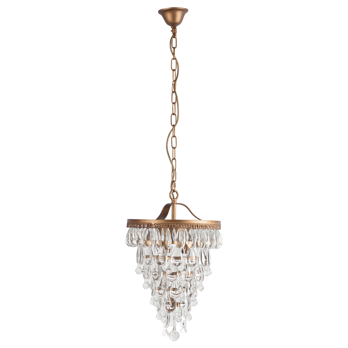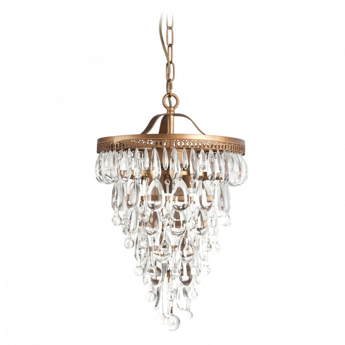 Люстра Emperor Medio. Яркая, гламурная и в то же время изысканно-сдержанная люстра EMPEROR, выполненная из металла, окрашенного под состаренное золото, в полной мере соответствует своему названию — императорская. Расположенные внутри нее три лампочки по 40 ватт превращают её в волшебный светящийся кубок, переливающийся всеми цветами радуги. Такой эффект достигается благодаря многократному отражению световых лучей в хрустальных подвесках люстры. Незначительные габариты являются главным достоинством люстры EMPEROR — благодаря небольшому размеру даже обитатели «скромных» квартир могут создать в них поистине королевские интерьеры с гармоничным освещением. Наиболее уместным люстру EMPEROR будет расположить в гостиной или спальне, оформленных с использованием мотивов стилей ампир, барокко, рококо.